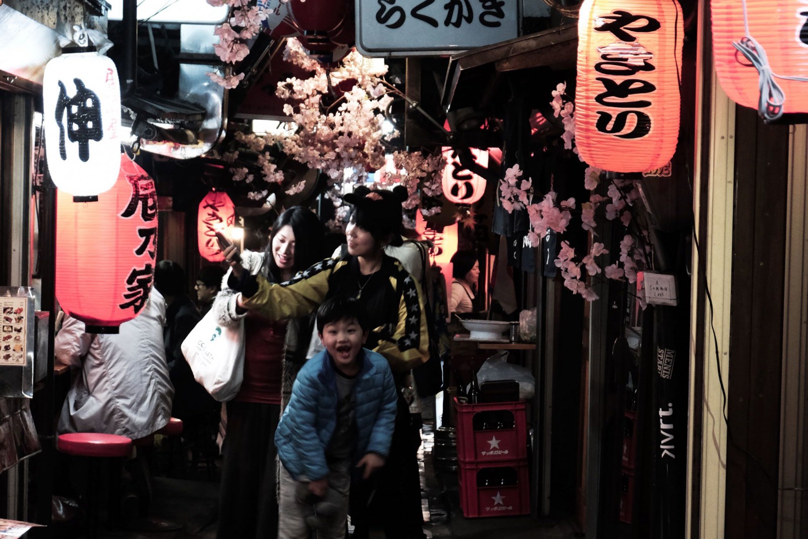 Puis nous faisons un dernier petit détour dans la rue Omoide Yokocho, près de la sortie est de Shinjuku. Il s'agit de deux petites ruelles (dont une tellement étroite qu'on y passe à peine à deux) jonchées de petits restaurants typiques (ou l'on y boit, beaucoup, beaucoup, beaucoup... jusqu'à en perde la mémoire, d'où sûrement le nom, omoide - 思い出 -, signifiant "souvenir").