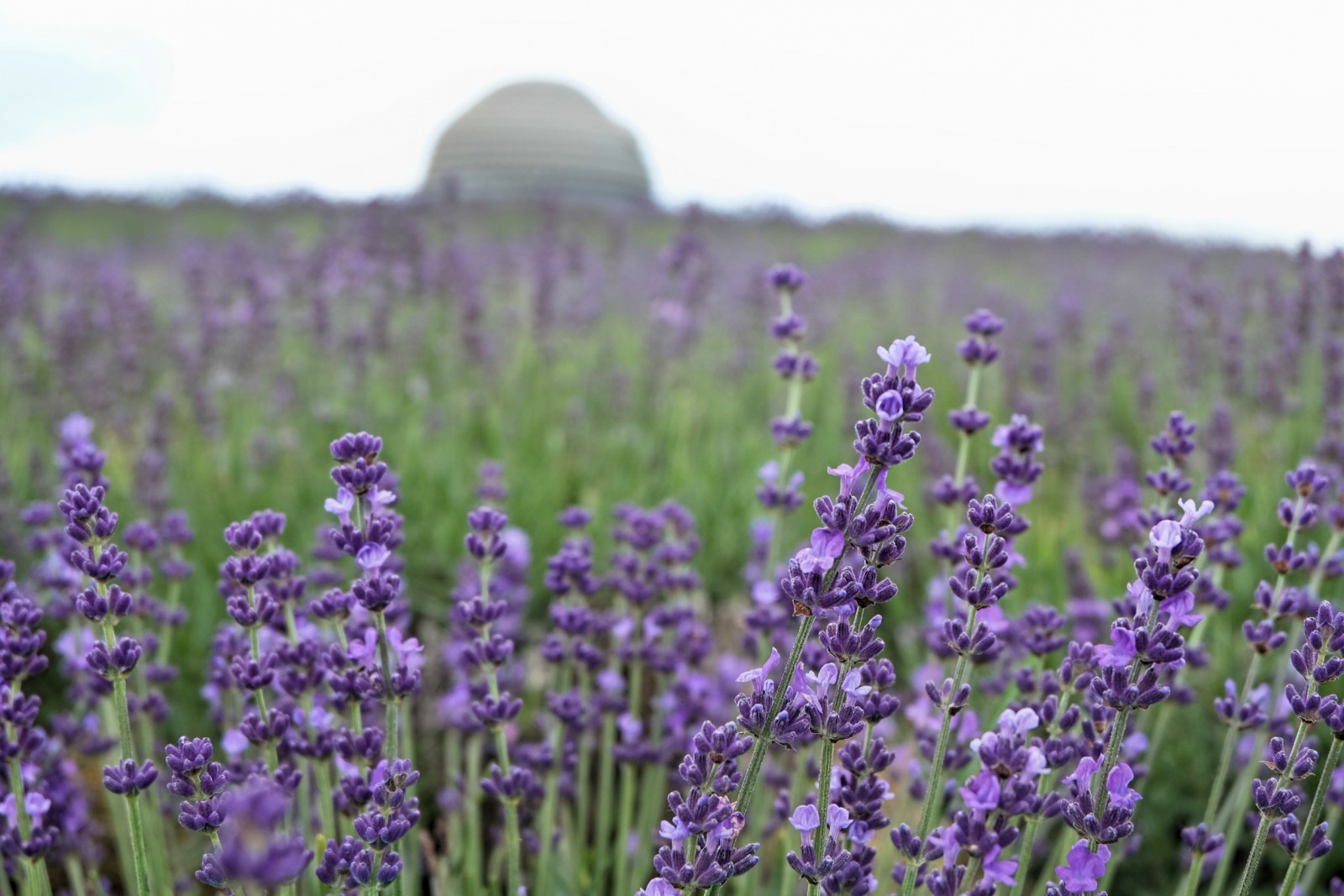 Sauf qu'ici, l'arrivée en bus est déroutante : rien à l'horizon à part une immense butte de lavande... Autour, une représentation de stonehenge revisité, et des statues ressemblant à celles de l'île de Pâques ! Mais en y regardant de plus près, dépassant légèrement du champ de lavande, on peut y aperçevoir une tête de ce qui semble être un bouddha géant !